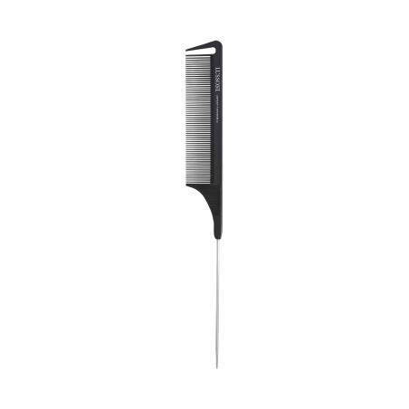 The Lussoni PTC 306 comb was designed to separate hair into strands. It is particularly useful for permanent waving treatments. The fine metal tail precisely separates hair into thin strands. Small, narrowly spaced teeth thoroughly comb hair strands, and their rounded tips are gentle on the scalp.This model has a separate tooth at the end for separating hair.